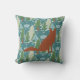 Een kleurrijk winterkussen met rood vossenpatroon met een blauwgroen blauw bos, sneeuwvlokken, wolken, groenblijvende besneeuwde bomen en kleine rode vossen! De voor- en achterkant hebben beide een grotere silhouet rode vos!