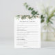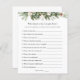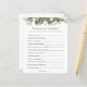Wie kent de Paar Best? Vrijgezellenfeest spelkaart met een waterverf-cascade van wintergroen.