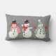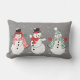 Het seizoen vieren met een feestelijk kussen met dansende sneeuwmannen op een grijs kussen.