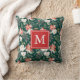 Op onze wintervakantieworp staan je monogram of initialen in een rood, vierkant lijst met een patroon van waterverf punsettia bloemen, ivoorbloemen, holly bessen en groen bladeren tegen een groene achtergrond.