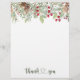 Winter Pijn Dank je kaart. Dit ontwerp bevat een afbeelding van pijnboomtakken en keien met rode bessen in de vorm van een waterverf op witte achtergrond. De tekst "Dank u"wordt geschreven in een kalligrafiestijl. Pas uw eigen tekst aan. U kunt ook lettertype, kleur en grootte wijzigen.