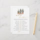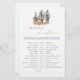 Dit ontwerp is voorzien van waterverf kerstbomen in zachte, rustieke tinten groen, versierd met natuurlijke bruine en beige-getinte kerstballen.