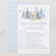 Add a touch of elegance to your winter festive themed baby boy shower with our sophisticated "Over or under" game. Featuring a charming teddy bear wearing a cute bow, holding blue balloon, surrounded by pine trees and snowflakes, this delightful activity is perfect for enterntaining your guests and creating lasting memories.
