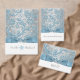 Dit elegante en feestelijke 8,5 "x11" fold-in-half huwelijksprogramma met een zilvergrijze en witte achtergrond met witte sneeuwvlokken en een ijsblauw bloemendamast patroon heeft een BEDRUKT stalen blauwe lint en strik met een paar diamanten juwelen en FAUX blauwe glitter verenigde harten erop die overeenkomt met de winter of Kerstmis bruiloft uitnodigingen hieronder getoond. Alle tekst is aanpasbaar. Stuur een e-mail naar niteowlstudio@gmail.com als u hulp nodig heeft bij het aanpassen van deze gegevens, of als u vragen of verzoeken heeft.