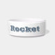 Een huisdier kom met een schattige waterverf Cavalier King Charles met een rode sjaal in een koud landschap. .