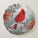 Winter's Grace: winterrood kardinaal vogel rond kussen. Omarm de allure van het seizoen met de levendige aanwezigheid van een rode kardinaal, die een vleugje natuur's schoonheid toevoegt aan uw ruimte in een charmant rond kussen.