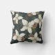 Witte bloemen met lichtblauwe accenten, pijndenkegels en naalden, en gouden contouren maken een verbluffend patroon aan beide zijden van deze kussen. De afbeeldingen van de waterverf worden op een donkerdusty blauwe achtergrond geplaatst. Leuk voor het winterseizoen, maar aantrekkelijk voor het hele jaar.
