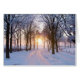 schilderachtig winterlandschap met zonsondergang door een aantal bomen