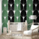 Wit Art Deco Patroon op groene zwarte strepen Behang