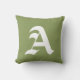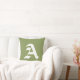 Wit Initiaal Monogram op olijfgroen minimalistisch Kussen