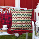 Wit Rood Groen Beige Chevron Patroon Kussen