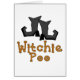 Halloween-heksenlaarzen en oranje tekst op Witchie Poo Halloween T-shirts, sweatshirts, mokken, kaarten, stickers, trick ors treat zakken, magneten en andere Halloween-heksenkleding en geschenken.