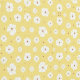 Licht, vrolijk en zonnig, dit behang heeft witte bloemen met rode centra, afgewisseld met rode stippen, op een gele achtergrond.