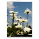 Witte madeliefjes met een blauwe bewolkte lucht als achtergrond