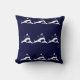 een deel van de oceaan die door de theater werd bedwelmd, MED STRIPE witte DOLPHINS op een marineblauw kussen aan één kant en de witte strook aan de achterkant.