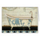© Lisa Audit / Wild Apple. Dit afbeelding is voorzien van een Frans blauw en wit bad met een handdoek aan de zijkant. De witte trommel heeft er blauwe decoratieve patronen op.