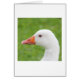 Een wenskaart met een aantrekkelijke, in het midden uitgelijnde vierkante Instagram-stijl foto van een Witte Emden gans. Kleinere herhaling van de afbeelding op de achterkant samen met titel en fotograaf/artiest enz. Deze kaart kan ook worden aangepast.