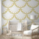 Elegant Nautisch en Kust thema Gouden witte schelp patroon op lichtblauw behang. Decoratieve gouden omtrek van witte decoratieve schelpen in een strak naadloos patroon. Zal tillen en ziet er geweldig uit op een accentmuur of alle muren in een kamer. Met zijn nautische en kustthema past het perfect bij uw huis aan het meer, kustretraite of hoe zit het met uw badkamer. Eenvoudig aan te brengen, geen extra lijm nodig voor deze schil en stick wallpaper. Perfect voor een DIY project. Verkrijgbaar in verschillende kleurcombinaties en lengte.