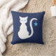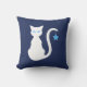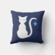Een silhouet van een witte kat op een marineblauwe achtergrond. De kat zit met opgeheven staart. Aan de staart is een ijsblauwe ster bevestigd.