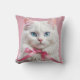 Witte Kat met Roze Linten Kussen