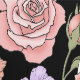 Een profiel van een witte kat met roze, blauw, lavendel en perzikkleurige rozen in een achtergrond van zwart