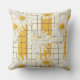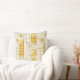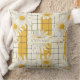 Vrolijk bloemig patroon gooi kussen met heldere witte madeliefjes met zonnige gele centra tegen een lichte crème rooster en vet gele verticale strepen. De strakke, handgetekende stijl en het frisse kleurenpalet roepen een heldere, opbeurende en tijdloze esthetiek op - ideaal voor lente-, zomer- en op natuur geïnspireerde design.