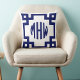 Witte Marine Blauwe Cirkel Monogram Griekse Sleute Kussen