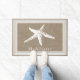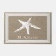 Haal een bijtend boerderijstrand naar dit hormoon. Het is elegant wit zeester silhouette staat op een faux burlap achtergronddruk met je gepersonaliseerde familienaam in het wit. De rand heeft een ontwerp van het witte lijnenlijst.