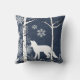 Als je van berkenbomen, vossen, natuur en wilde dieren houdt, zul je van dit kussen in zwart, blauw en wit met witte silhouetvossen, één aan elke kussenzijde, op een achtergrond van donkerblauwe winterlucht met grote en kleine sneeuwvlokken en witte berkenbomen.