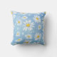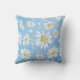 Een heldere en zonnige toevoeging aan je decor, deze gooiende kussen in een blauwe waterverf blik, heeft witte dadels met gele centers.
