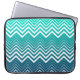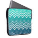 Witte zigzag Chevron en blauwe groene achtergrond Laptop Sleeve