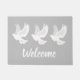 Witteduif op grijs deurmat