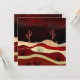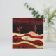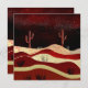 Abstracte landschapscène van een woestijn met saguaro cactus, schrobben borstel, heuvels, en sterren in schaduwen van rood, crimson, en beige en gewaagde texturen.