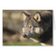 Blanco fotokaart met foto van het hoofd van de wolf aan de voorzijde en foto van het wolfraamsilhouet van de wolf