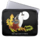 Een wolf die bij een volle maan huilt met herfstbladeren en eikels tegen een achtergrond van zwart.