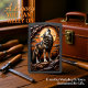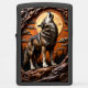 This lighter features a highly detailed, high-relief image of a majestic wolf standing on a rocky log or branch, letting out a powerful howl. The background features an orange full moon and a dark forest of pine trees, framed by twisted, dark branches. The scene captures a dramatic night setting with textured clouds and stylized nature elements. The entire background landscape has a luxurious, soft-leather look. This artwork highlights the simple, yet profound acts of comfort and support provided by farming professionals, symbolizing warmth and peace. The highest quality print and artwork used on the surface is so exceptional it creates a stunningly realistic tactile illusion; you could easily mistake the textures for genuine leather. The entire design is set on a matte black lighter casing. The design may look real due to the high detail in the artwork.