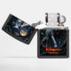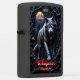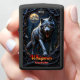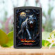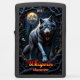 This captivating image showcases a custom, matte black rectangular case featuring a dramatic and mystical graphic. The artwork centers on a powerful gray wolf, depicted mid-stride with an open snarl, its eyes glowing fiercely with an orange light. The scene is set in a dark, moonlit forest, with tall pine trees in the background and a large, full moon casting light on snow-capped mountains. The entire image is framed by an intricate, gothic-style border made of twisted, dark branches and roots. The word "WOLF" is displayed at the top. Below the wolf, "Whisperer" is scripted in fiery orange text, followed by the name "Alexander" in smaller red text. This detailed and atmospheric depiction makes for a striking and artistic collectible item.