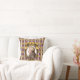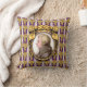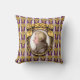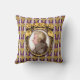 Op dit kussen van de muziekliefhebber staat een portret van de klassieke muziekcomponist Wolfgang Amadeus Mozart. Het portret is een profiel dat zich afspeelt in een ovaal gouden lijst met getufte gouden linten aan de bovenkant. Het lijst hangt op een paarse behangachtergrond met goudkleurige trossen druiven in rijen en verticaal witte en lavendelstrepen.