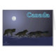 Een koude, wrede, onverlichte winternacht. Een hongerig wolvenpak jaagt om in leven te blijven. De tekst "Canada" wordt ook weergegeven in blauw en wit glanzend.