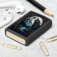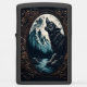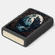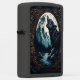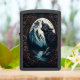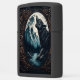 Een wolf huilt bij een volle maan, tegen een prachtige berg en rivier scene. Het ovale lijst versterkt zijn tijdloze schoonheid