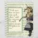 Een ontwerp met gekleurde originele Alice-illustratie en gouden eenhoorn. Het citaat komt uit Alice in Wonderland: door het kijkglas "Nou, nu we elkaar hebben gezien", zei de Unicorn. Als je in me gelooft, geloof ik in jou." Achtergrond van de onderdruk groene harlequin
