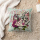Fancy digitale collage heeft bleke roze en blauwe gestreepte achtergrond, roze en groene bloemen en Alice in Wonderland's witte konijnenillustratie met roze tinten harten.