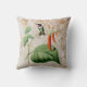 Het vierkant ontwerp van de kussen bevat een illustratie van de Witte-bellied Woodstar-kolibrie (Chaetocercus mulsant.) Een kleine groene kolibrie met een paarse keelstok op een tak van een koraalboon met heldere oranje zaadpotigen, op een gebroken witte achtergrond met goudzeren en bloemsilhouettes.