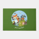 Vergeet niet je voeten te wissen na je vlucht. Een deurmat met een afbeelding van dieren met een landoverschrijdende lange-afstandsrun. Fox passeert moeiteloos de finish, met een vastberaden eekhoorn niet ver achter, en een moe badger over de heuvel achteraan. Met enthousiasme ondersteund door stut, mus, hommel en vlinder. Een uitstekend ontwerp voor ventilatoren van rennen en cartoons. Verander de standaardtekst in uw aangewezen bericht of titel.