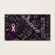 Deel een belangrijke boodschap met dit stijlvolle visitekaartje-ontwerp dat een Breast Cancer Awareness woord cloud-ontwerp bevat. Sommige van de woorden zijn: Hoop, Liefde, Geloof, Geloof, Moed, Bewustzijn, Zuster, Moeder, Dochter, Tante, Grootmoeder, Krachtig, Denk Roze met roze Breast Cancer Awareness linten overal. Ideaal voor bewustzijnsevenementen, wandelingen, liefdadigheidsdoelen en elke gelegenheid om aandacht te vragen voor deze zaak. Kies een achtergrondkleur en pas het ontwerp aan door het patroon groter of kleiner te maken en met de pijlknoppen tekst en linten naar uw eigen smaak te verplaatsen. Zoek ID261 om dit patroon te zien op extra overeenkomende producten.