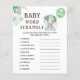 Voeg gelach en speelsheid toe aan je Baby shower met onze 'Word Scramble | Elephant Green Balloon Baby shower! De gasten zullen veel plezier hebben bij het invullen van de lijst met woorden op deze kaart, allemaal gerelateerd aan baby's, die ze als eerste kunnen ontwarren! Haal de jouwe vandaag en creëer onvergetelijke herinneringen! Oplossing: 1. formule 2.pacifer 3.baby monitor 4.schommelstoel 5.swaddle 6.luier raffle 7.rubber ducky 8.kinderwagen 9.playpen 10.eosines