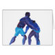 Een schilderij van twee mannen die worstelen. Beide mannen worden in blauw/paars gesmolten en dragen een blauwe korte broek.