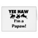 Yee Haw Ik ben een Papaw T-shirts, mokken, kaarten, stickers, aankondigingsknoppen, papaw keepsakes, en andere papaw kleding en geschenken met een buckaroo paard en zwarte tekst ontwerp. Deze kleding en cadeau artikelen zijn perfect voor de eerste keer grootouders of doorgewinterde papaw van een nieuwe aankomst!