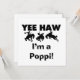 Yee Haw Ik ben een Poppi T-shirts, mokken, kaarten, stickers, aankondigingsknoppen, keepsakes, en andere poppi kleding en geschenken met een buckaroo paard en zwart of wit tekst ontwerp. Deze poppi kleding en cadeau artikelen zijn perfect voor de eerste keer grootouders of doorgewinterde poppi's van een nieuwe aankomst!