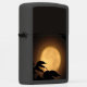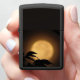 Het najaar, en een lichtgele gouden volle maan, is gestegen achter de zwarte silhouetten van bladeren die in de bries blazen op deze prachtige kunst Zippo Lighter. De achtergrond wordt verlicht in kleuren van oranje, goud en bruin in in een Aziatisch motief.